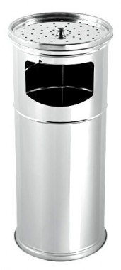 Підлогова урна виконана з високоякісної нержавіючої сталі з попільничкою зверху і бічним отвором для сміття.
